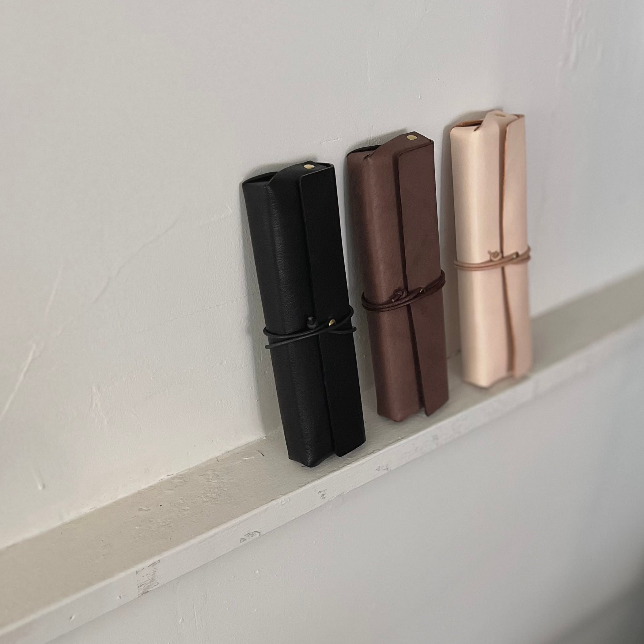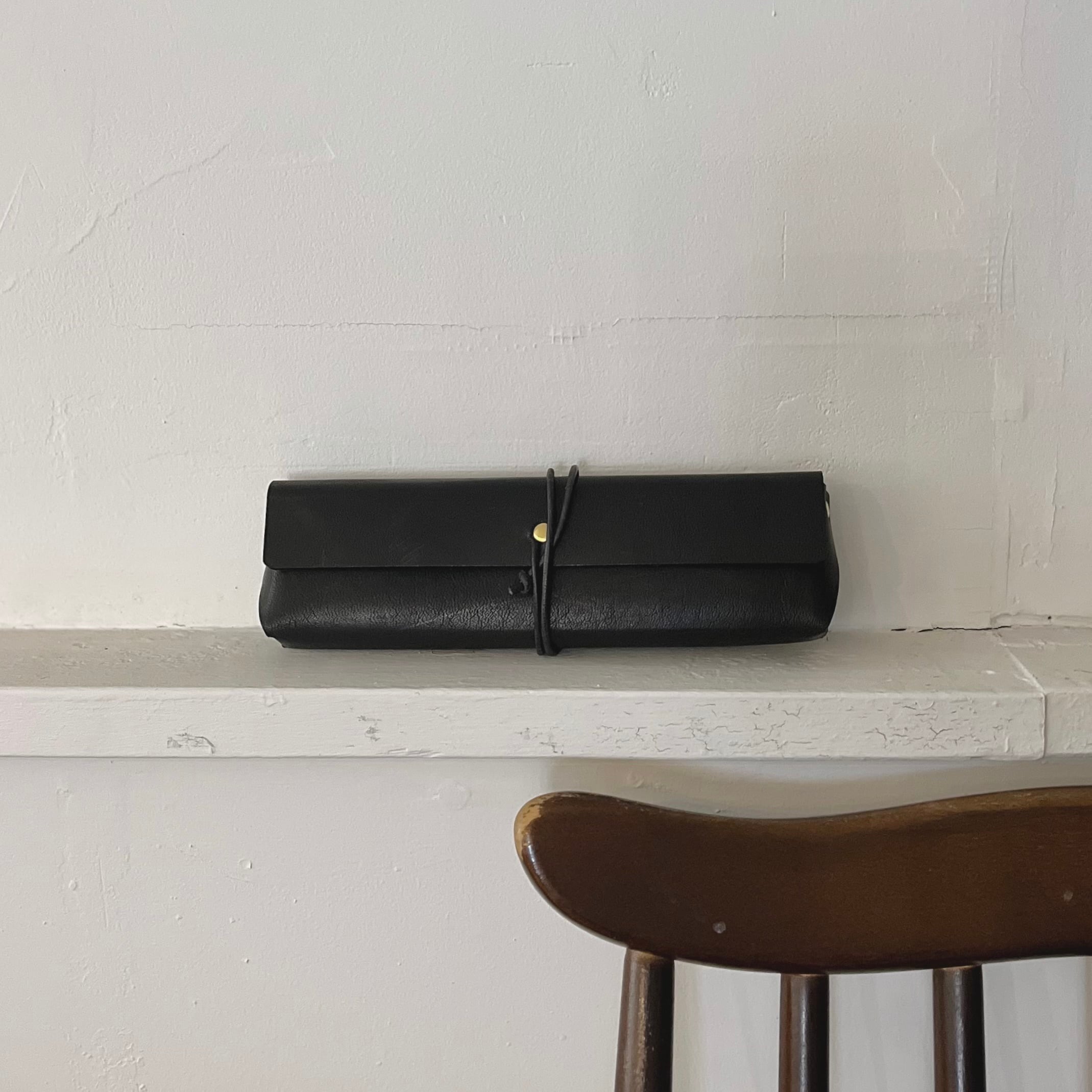 2cmほどのマチをつけてボックス型に仕立てることで、見た目によらず、ペン5本程度の収納が可能。もちろん15cm定規も収まるように計算してお作りしています。