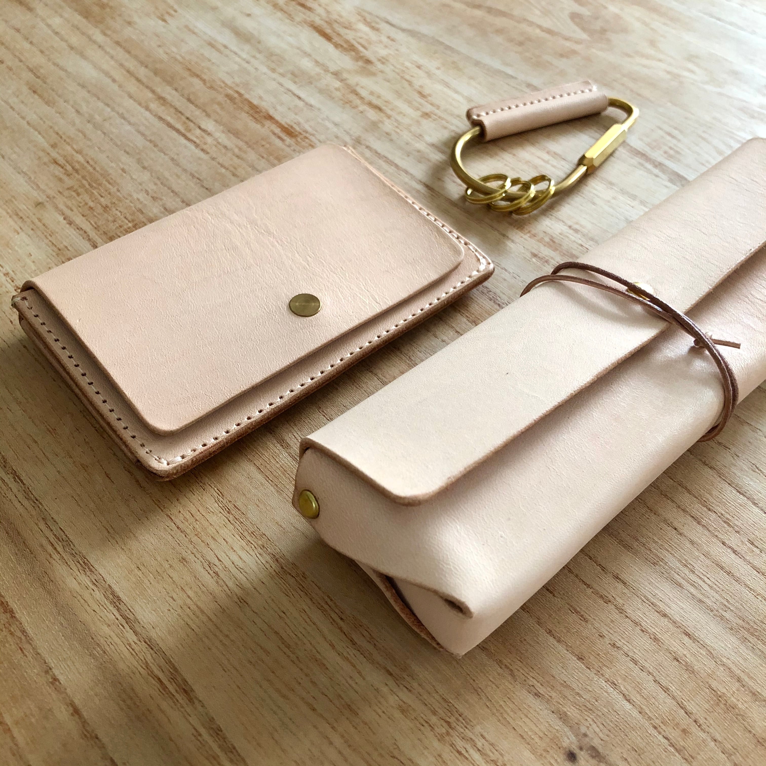 キナリは染料を一切使わずに仕上げられた、いわゆる“生成り”。革本来の素に近い色味です。最も革らしく、経年による色艶の変化を感じていただけます。