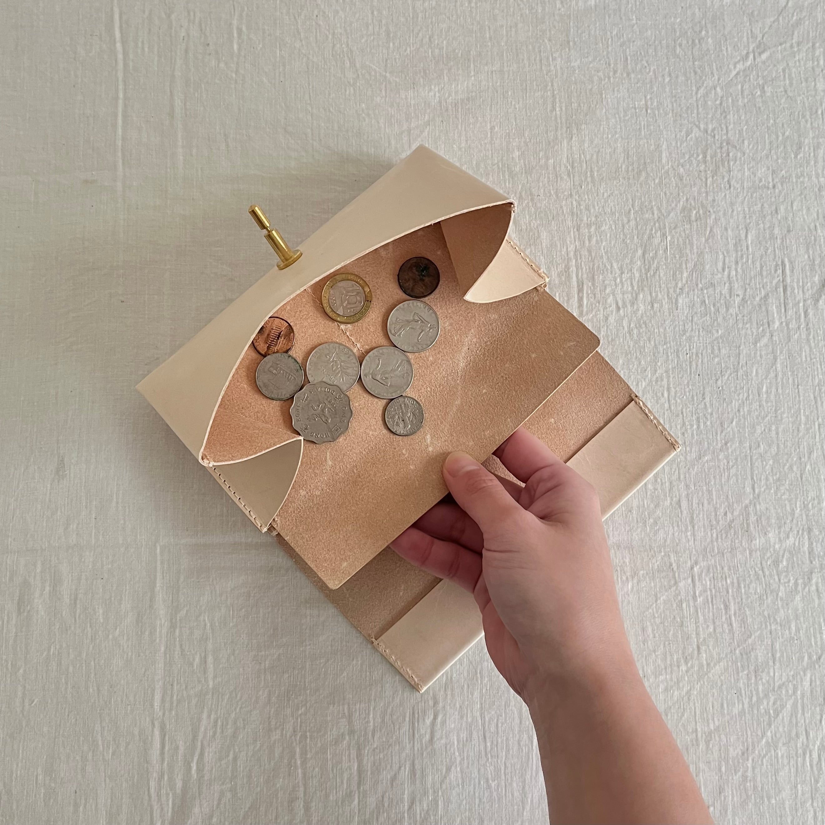 横幅17cmと市販品ではなかなかない小ぶりさながら、一万円札もジャストサイズで収まります。